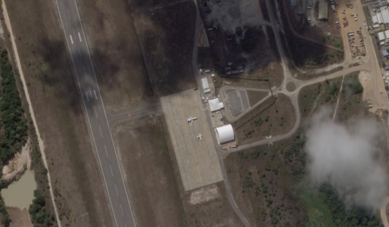 In addition to the trips by V5-WEN, another jet is visible in high-resolution satellite imagery at Afungi airstrip on 25 July 2025 at 11:25 UTC (see image above). While its size and appearance roughly match that of the V5-WEN, its presence at this date and time does not match the flight records.
